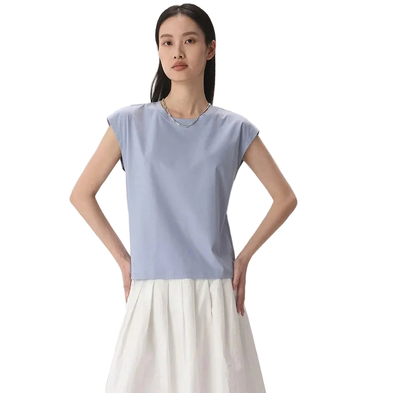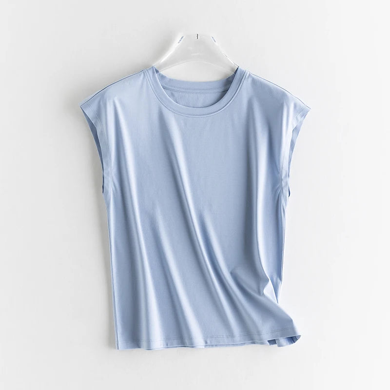 Mulberry Silk Mercerized Cotton Crewneck Sleeveless Women's T-shirt